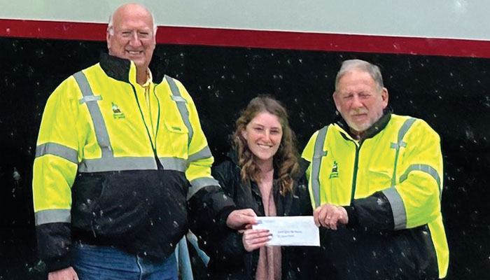 2022 Holly Ball Queen Jessica Haynie raised $6,100 for her service project to help Smith Point Sea Rescue (SPSR) outfit its new rescue vessel. She recently presented the service project contribution to SPSR representatives. From left are Pete Ortiz, Queen Haynie and Russ Bertino. Queen Haynie thanks everyone who made a donation for a great cause.