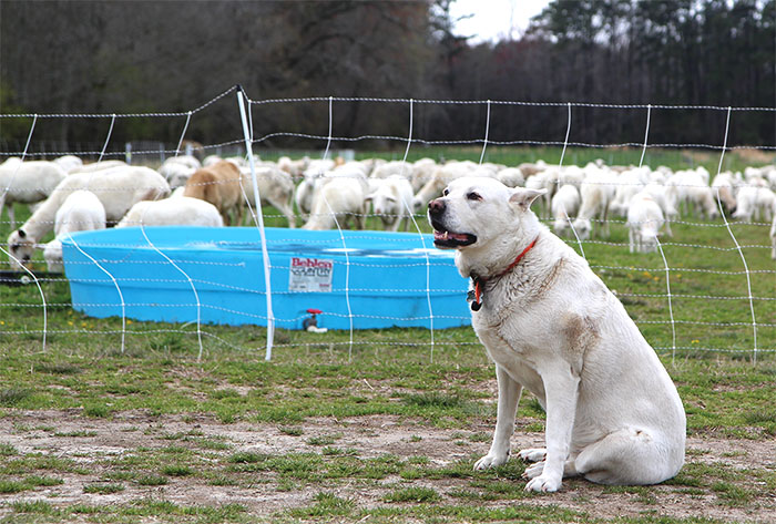 Everyone has a job on Kilmarnock’s Fern Hollow Farm. Livestock guardian dog Stella’s role is to watch over the flock to keep predators, in this case coyotes, at bay. Stella is part of the Farm to Table story in this week’s Record. Photo by Jackie Nunnery